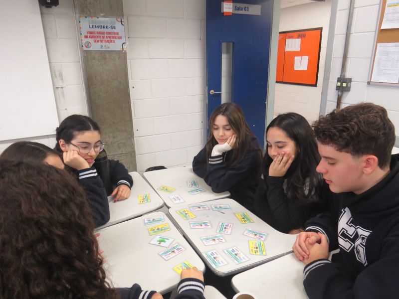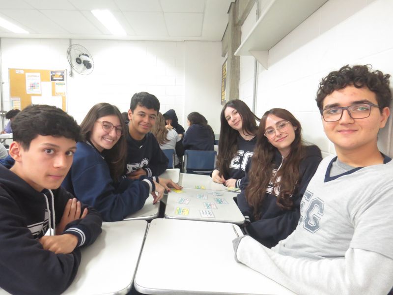 Com o objetivo de consolidar o aprendizado do semestre, os alunos da 1ª série do EM participaram de um dinâmico jogo da memória, orientados pela Professora Paula, de Literatura.