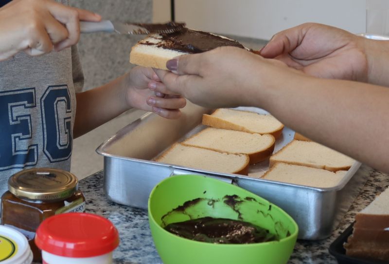 Durante a aula, os alunos prepararam um café da manhã saudável inspirado em tradições culinárias dos EUA.