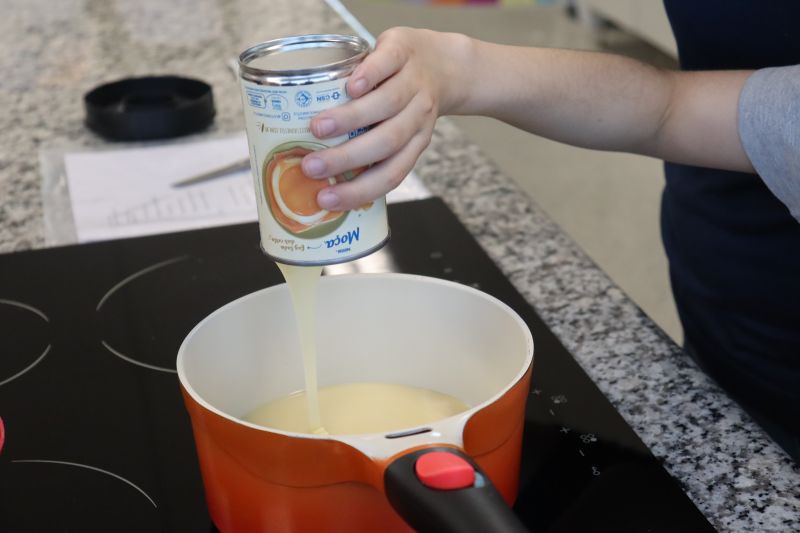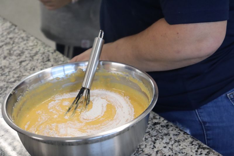 Enquanto a Cássia conduzia o preparo, os alunos aprenderam o passo a passo da receita e o nome de cada ingrediente, em inglês.