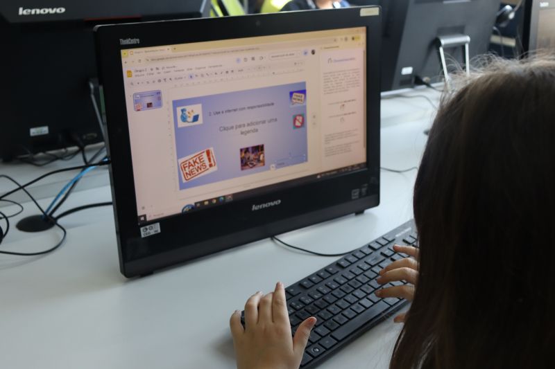 Para aprofundar os conhecimentos discutidos em sala, eles participaram de uma atividade no laboratório de informática, onde criaram o Manual do Bom Cibernauta.