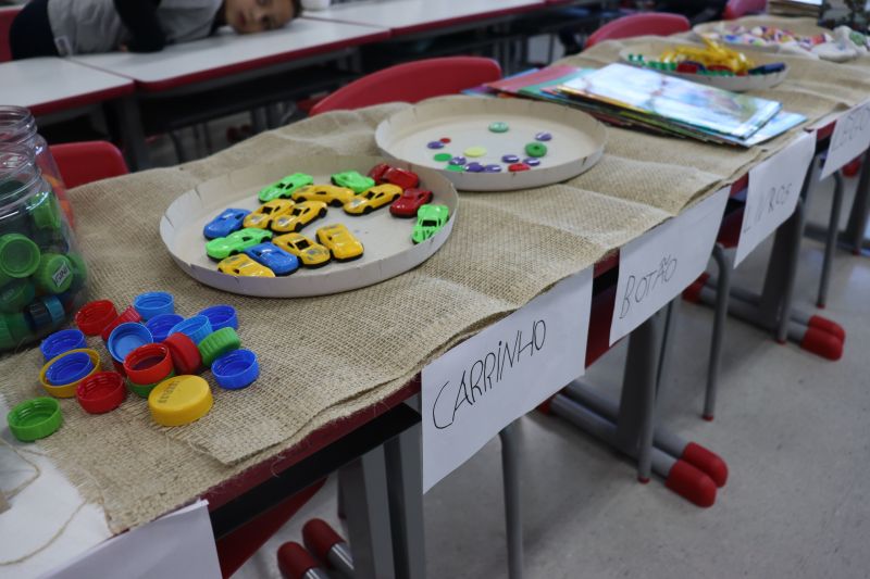 O objetivo foi trabalhar contagem, seriação e classificação de objetos.