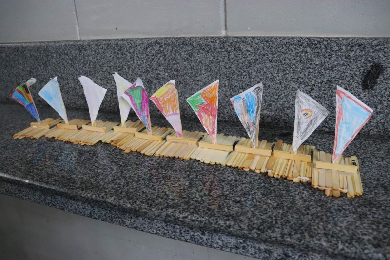 O tema central foi a jangada, uma embarcação artesanal que é um símbolo cultural da costa litorânea brasileira. Utilizando materiais como palitos de sorvete, cola, papel e lápis de cor, os pequenos confeccionaram suas próprias réplicas desse meio de locomoção.