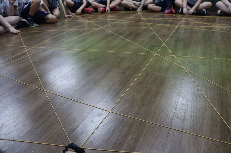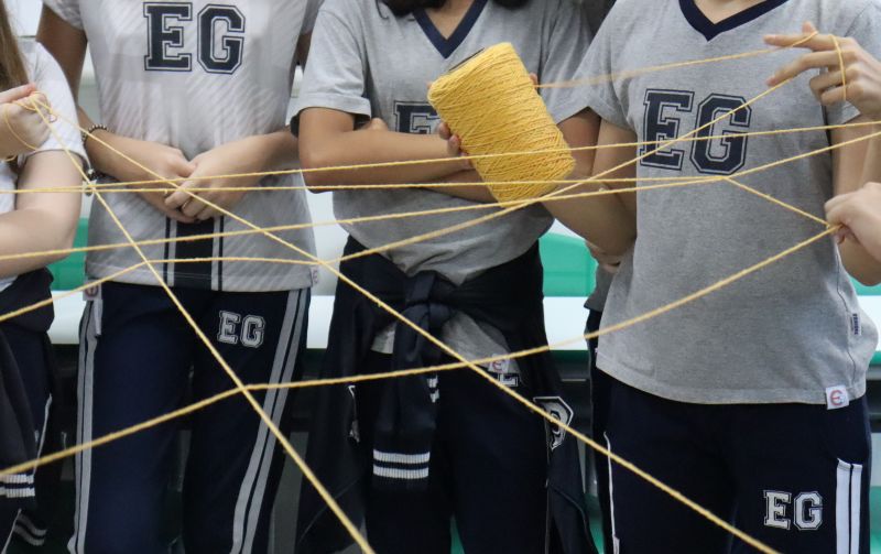 Em roda, cada aluno falava sobre o que valoriza na amizade e, após sua fala, jogava o rolo de barbante para o próximo aluno. Depois de todos manifestarem seus sentimentos, uma teia de barbante foi formada, mostrando a importância de cada um para a construção da teia.