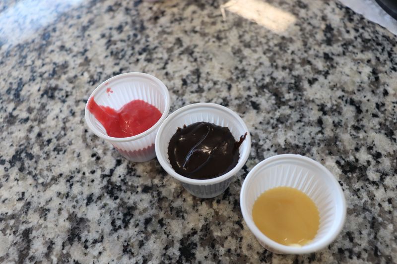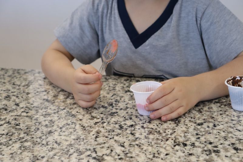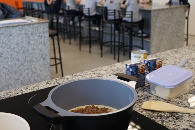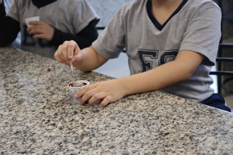 Com a ajuda da Cássia, os pequenos prepararam saborosos brigadeiros com diferentes cores e sabores: tradicional, morango e maracujá.