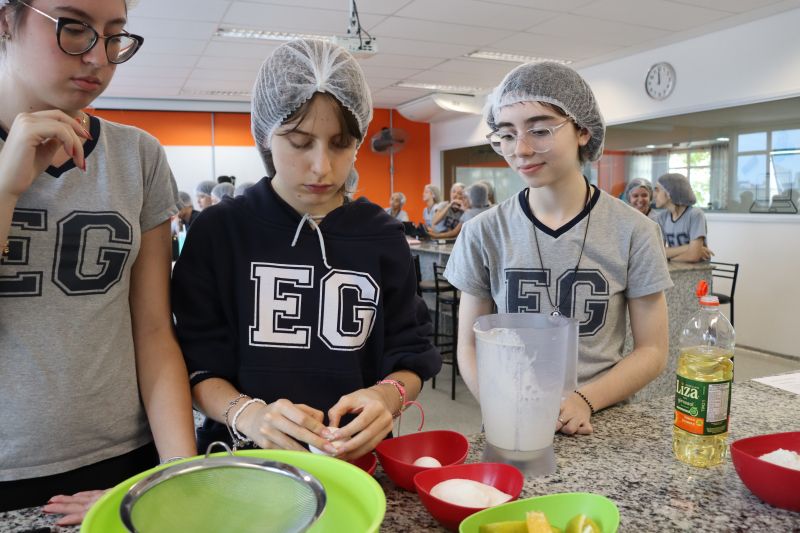 A atividade visou reaproveitar partes de alimentos que normalmente seriam descartadas, transformando-as em novas preparações. Orientados pela Cássia, na Cozinha Experimental, os alunos colocaram em pratica o que aprenderam em sala de aula.