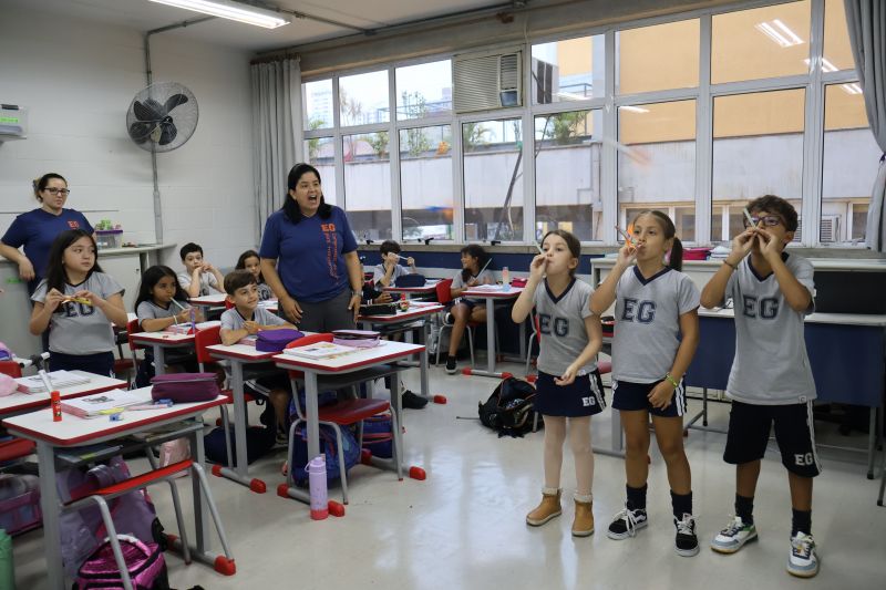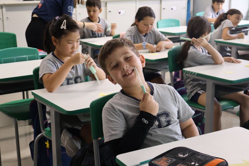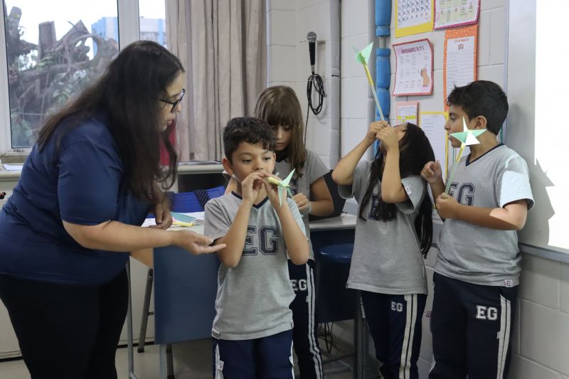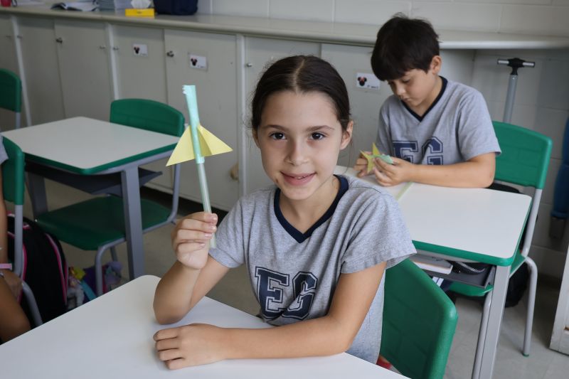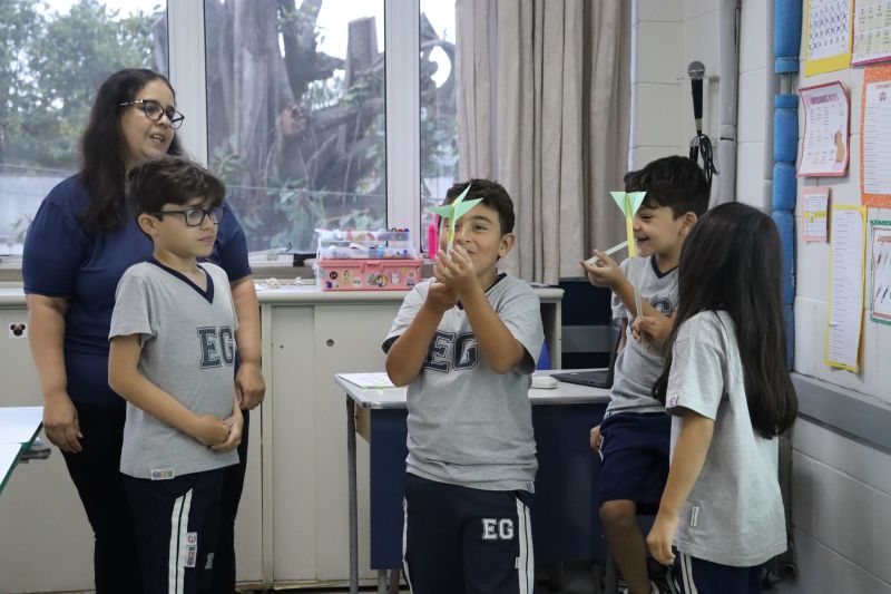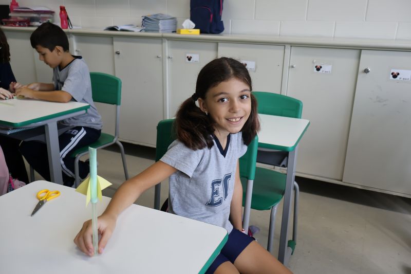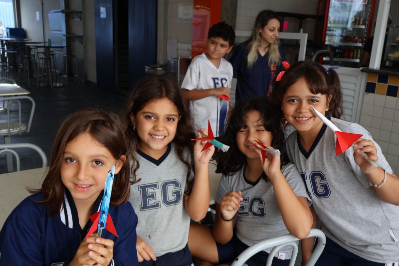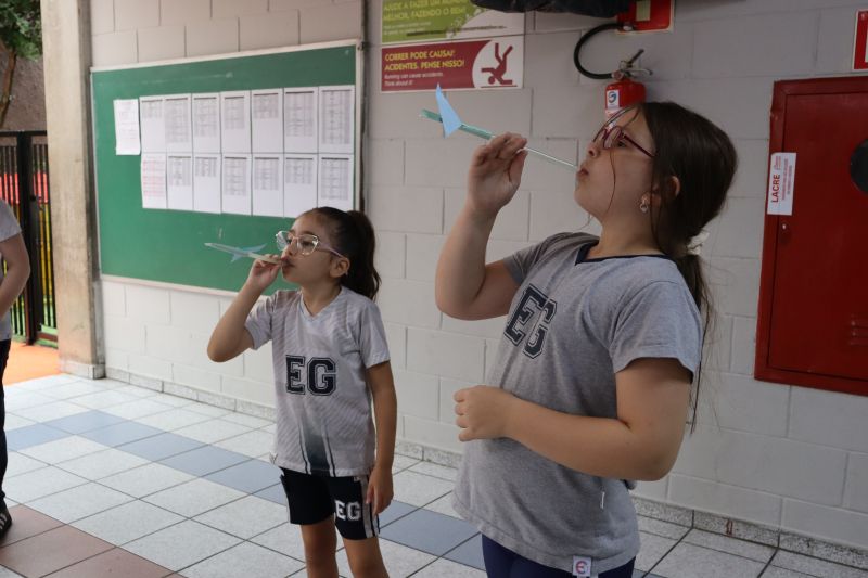 Dessa forma, os pequenos trocaram experiências e verificaram suas hipóteses para o lançamento dos foguetes, de modo divertido e interativo.