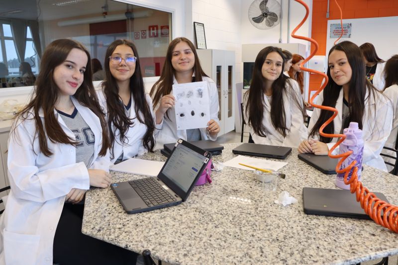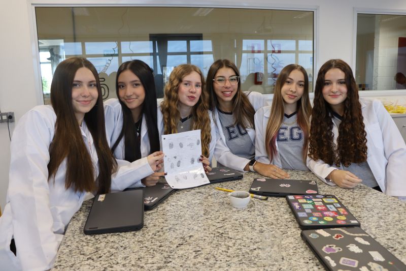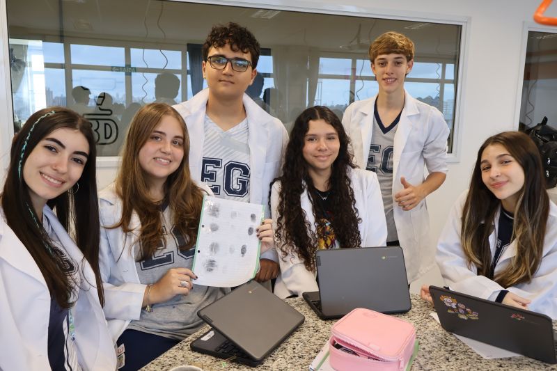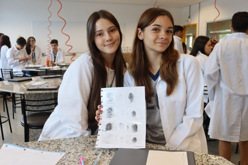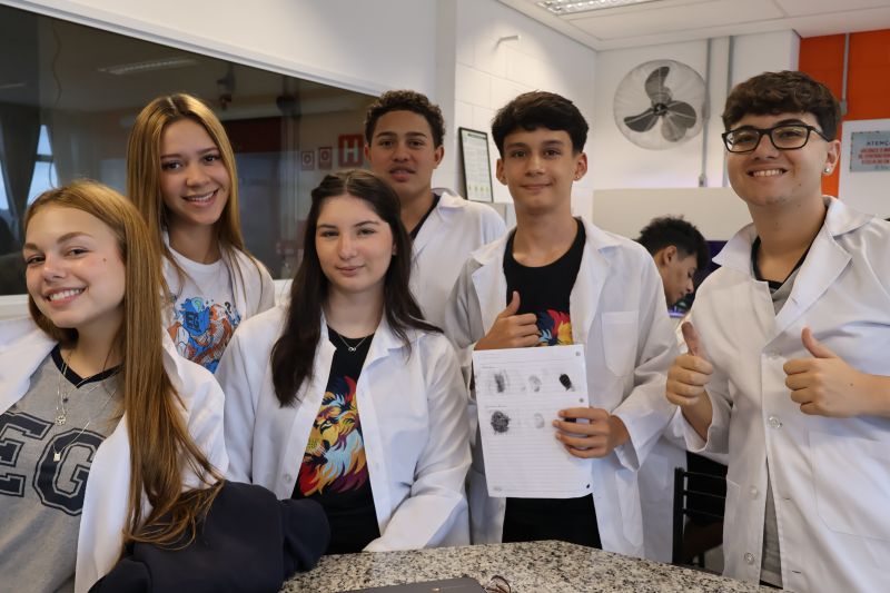 Os alunos da 2ª série do Ensino Médio participaram de uma aula prática, no laboratório, orientados pelo Professor Alex, de Química, com o objetivo de explorar a polaridade das substâncias por meio da impressão digital.