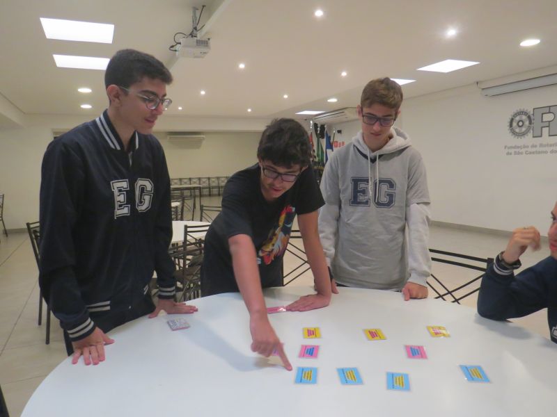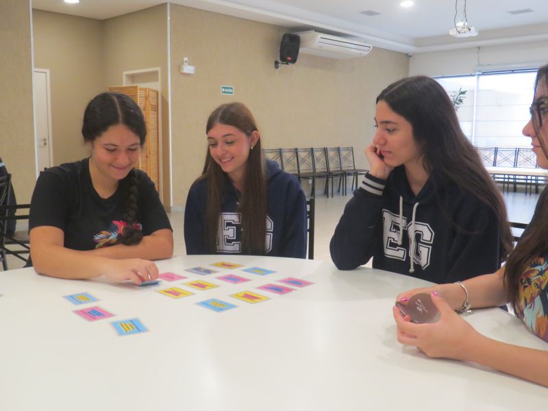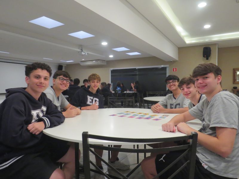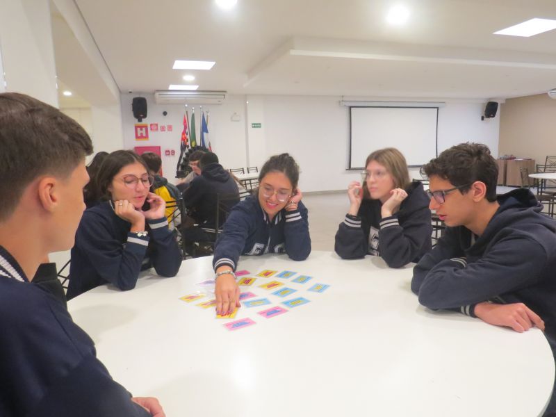 Além de estimular o trabalho em equipe, a dinâmica proporcionou uma forma leve e interativa de revisar os conteúdos trabalhados no Módulo 3 do material Anglo.