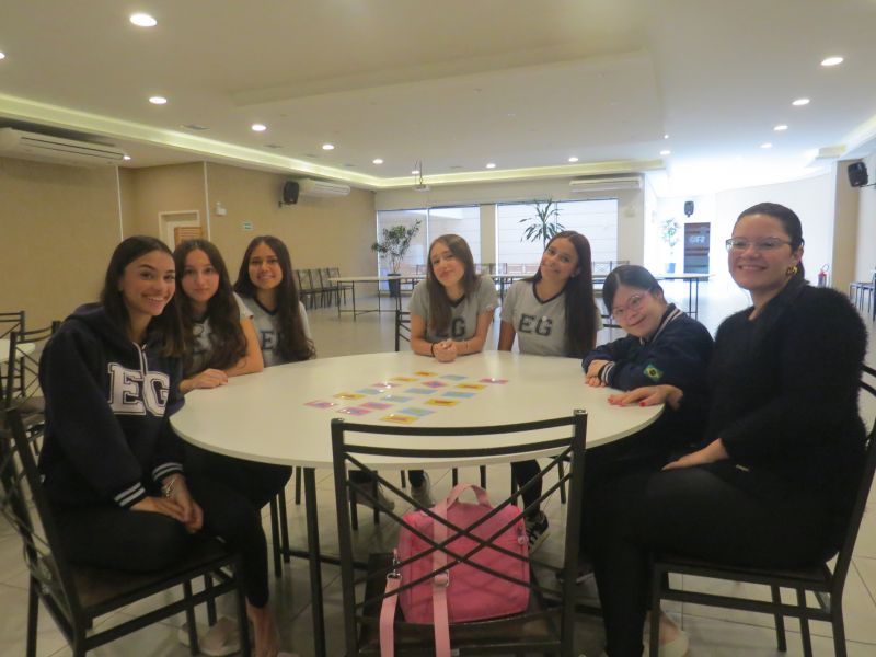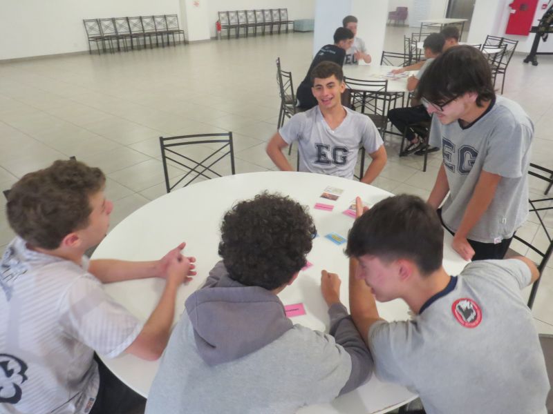 Além de estimular o trabalho em equipe, a dinâmica proporcionou uma forma leve e interativa de revisar os conteúdos trabalhados no Módulo 3 do material Anglo.