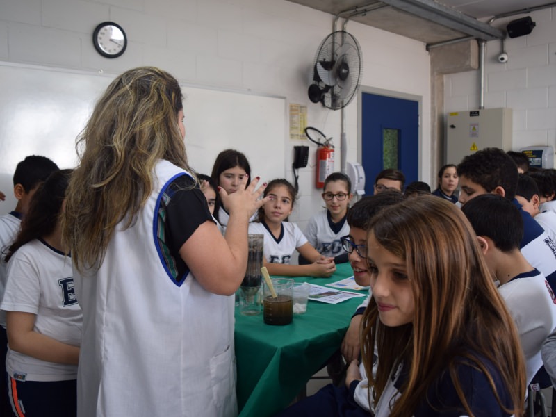 O laboratório de Ciências foi decorado para chamar a atenção dos estudantes de acordo com o propósito dos professores e, em cada uma das três mesas do local, abordava-se um assunto diferente.