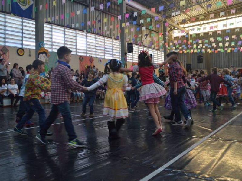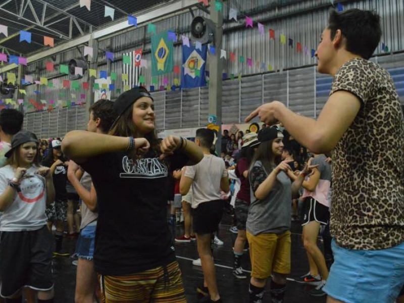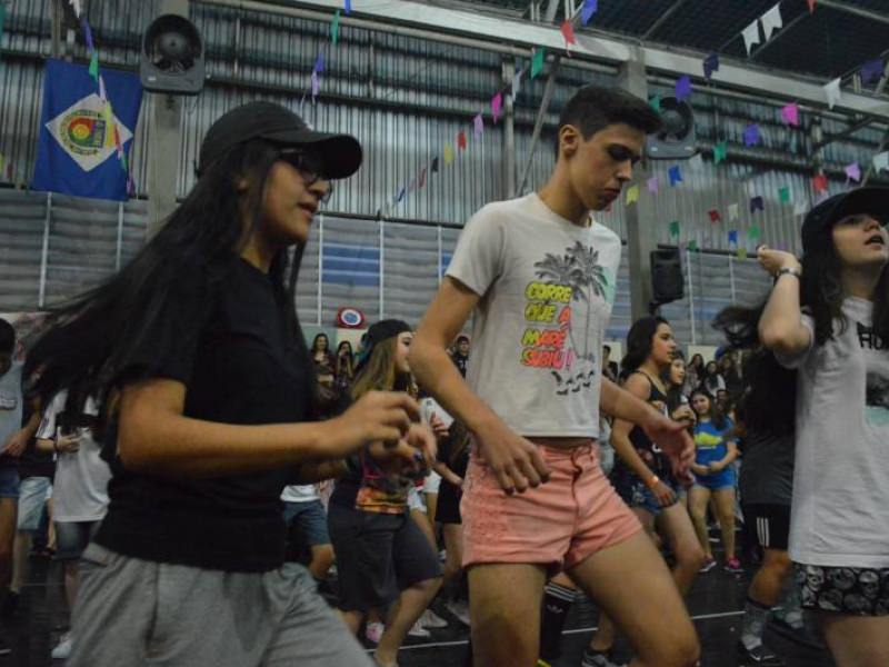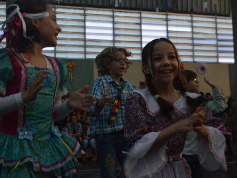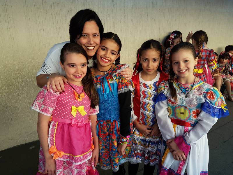 Semanas antes, os alunos já estavam em clima de festa, ensaiando para as apresentações de dança, todos os dias, com muita alegria.