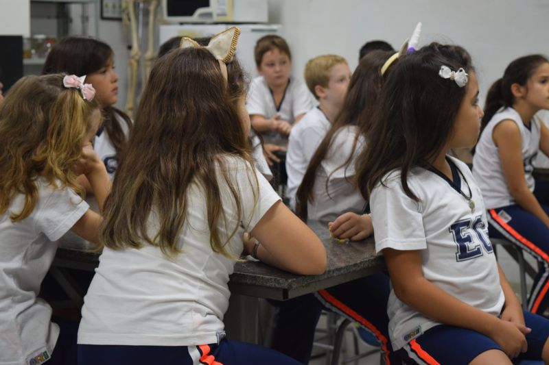 Depois de compreenderem todo o processo, voltaram para a classe, responderam a questões na apostila e fizeram um desenho sobre o experimento.