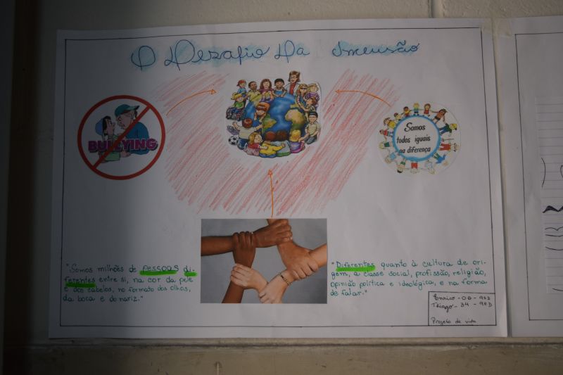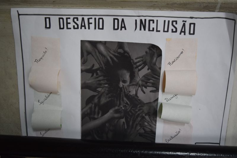 Como ponto de partida, eles fizeram a leitura de um texto intitulado de “O Desafio da Inclusão”, sobre as diferenças entre as pessoas, sejam elas culturais, sociais, profissionais, políticas ou físicas, como a cor da pele ou do cabelo.