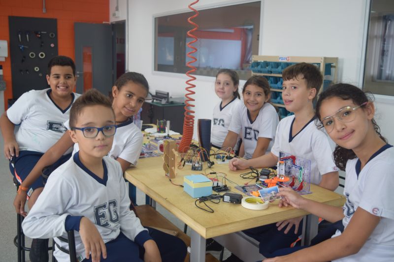 No mês de fevereiro, os alunos do 5º ano do Ensino Fundamental, sob orientação da Profª Tânia Pequeno e da responsável pelo Espaço Maker, Virginia Amorim, aprenderam sobre giros horários e anti-horários.