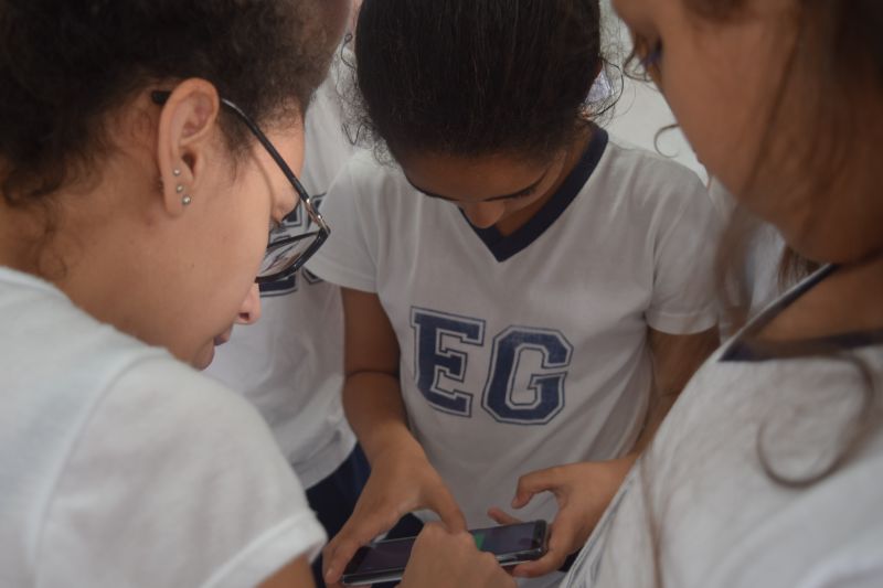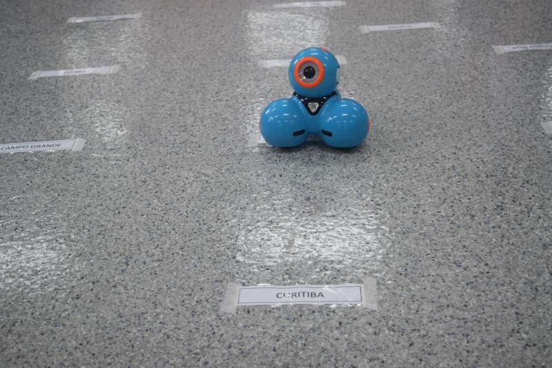 No Espaço Maker, os alunos puderam programar as direções de um robô a partir de diversos pontos.