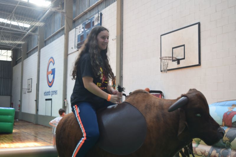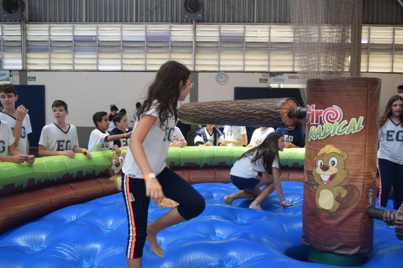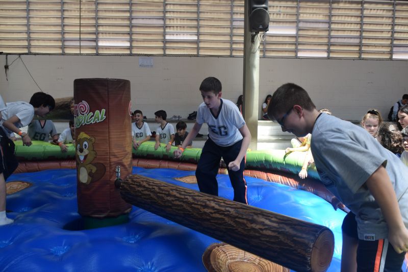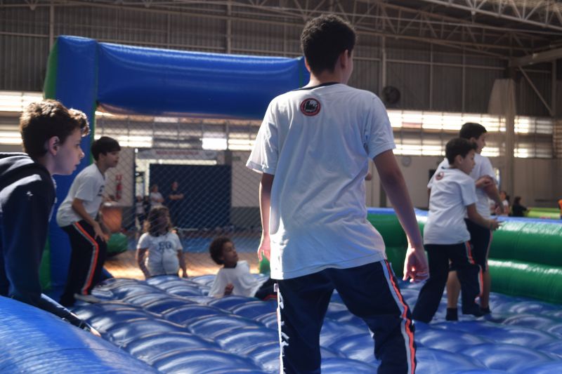 A Quadra Poliesportiva do Colégio foi tomada pelas crianças, que se divertiram em diversos brinquedos, com grande alegria estampada no rosto.