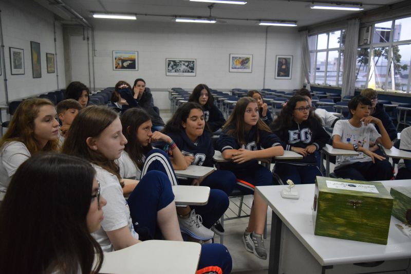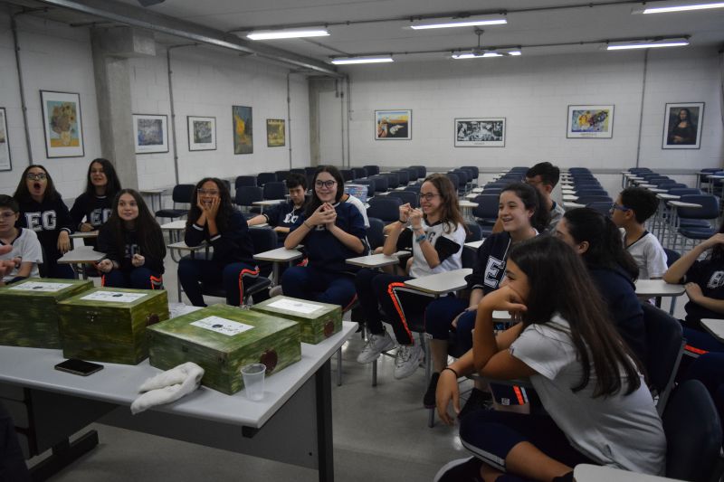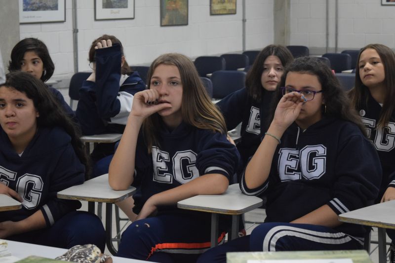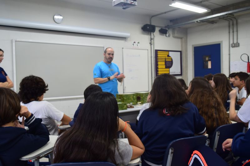 Visando promover a compreensão dos alunos acerca das características essenciais de cada ser vivo do Reino Animal, como representante, modo de obtenção de alimento, modo de vida, habitat, novidade evolutiva e ciclo de vida, a Profª. Bárbara Chagas, de Ciências, levou os alunos do 7º ano do Ensino Fundamental à sala de multimídia para conhecerem alguns seres vivos.