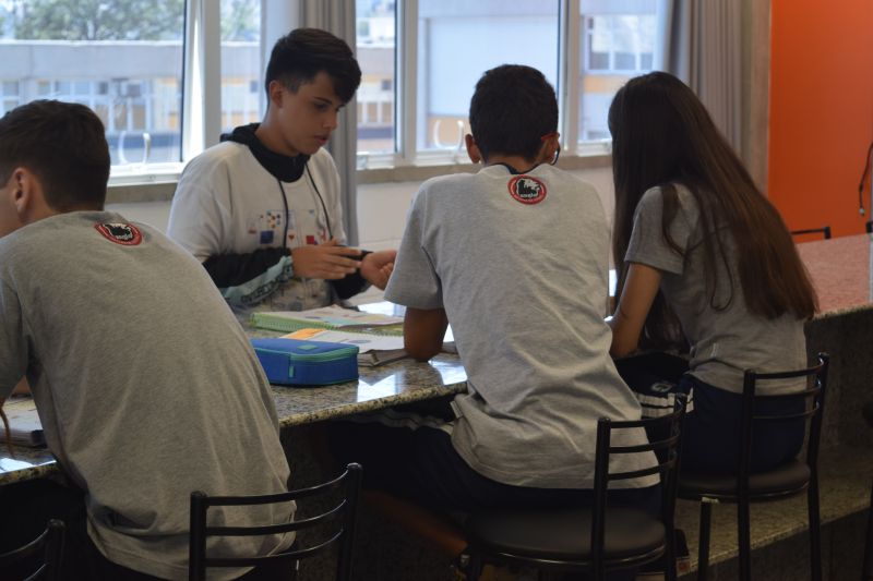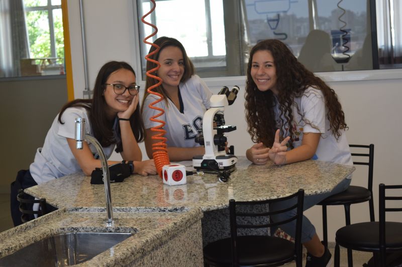 Com o objetivo de aprimorar os conhecimentos acerca do Reino Monera e mostrar as partes de um microscópio óptico, a Profª Valquiria Nunes, de Biologia, levou os estudantes da 1ª série do Ensino Médio ao Laboratório de Ciências e à Cozinha Experimental.