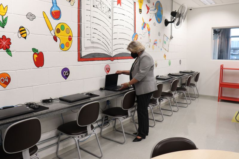 Em seguida, percorreu, com entusiasmo, as instalações do complexo educacional do Colégio Eduardo Gomes, mostrando-se encantada com sua estrutura física e com os investimentos feitos para que os alunos tenham o melhor em relação à tecnologia, ao ensino e ao esporte.