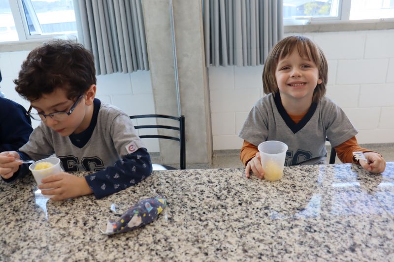 Depois, com o auxílio das Prof.as Marcela e Helena e da Thaisa (responsável pela Cozinha Experimental e pelo Laboratório) foram à Cozinha Experimental para vivenciar formas de preparo desses alimentos e compreender como eram consumidos, há muito tempo, por nossos antepassados.