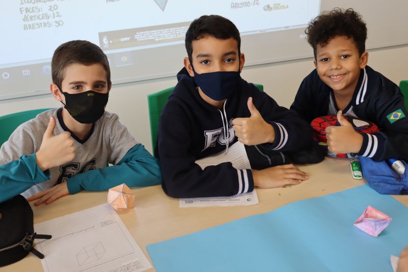 Os alunos do 5º ano do Ensino Fundamental estudaram sobre poliedros, polígonos, retas e pentagramas com a Prof.ª Tânia. Retomaram os conceitos trabalhados em anos anteriores e ampliaram seus conhecimentos.