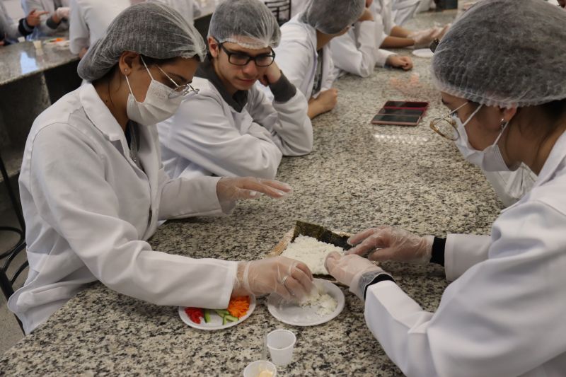 O objetivo da atividade foi levar os alunos a conhecerem e a valorizarem as algas e seus valores nutricionais, além de entrarem em contato com a culinária japonesa. Na cozinha, aprenderam e colocaram em prática os passos para preparar o sushi.