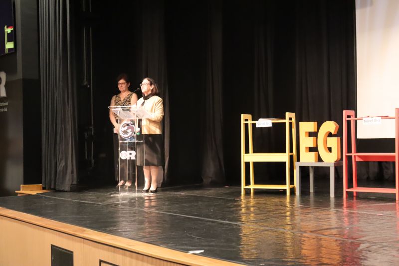 As alunas Luana Vieira Lofrano, representando o Nível A1, e Letícia Rodrigues Crema, representando o nível B1, deram seu depoimento sobre a experiência da conquista da certificação.