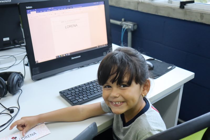 Cada estudante digitou seu nome, localizando e memorizando as letras e trabalhando a coordenação motora.