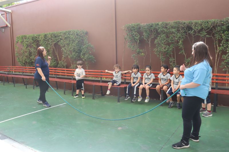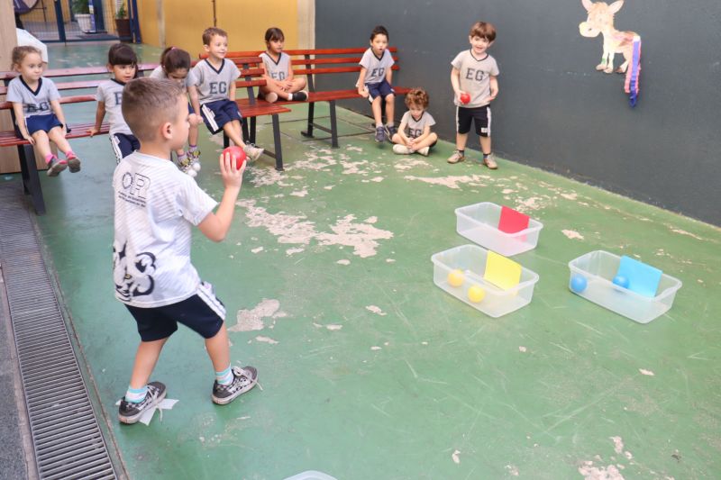 Por último, a Professora Luciana preparou algumas brincadeiras para os alunos: pesca numérica, rabo de burro, bola ao cesto, corrida de saco e cabo de guerra.