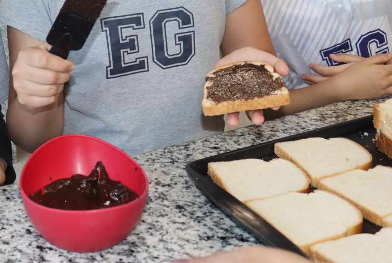 Durante a aula, os alunos prepararam um café da manhã saudável inspirado em tradições culinárias dos EUA.