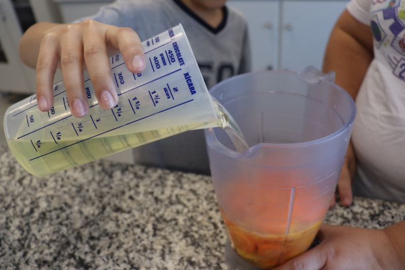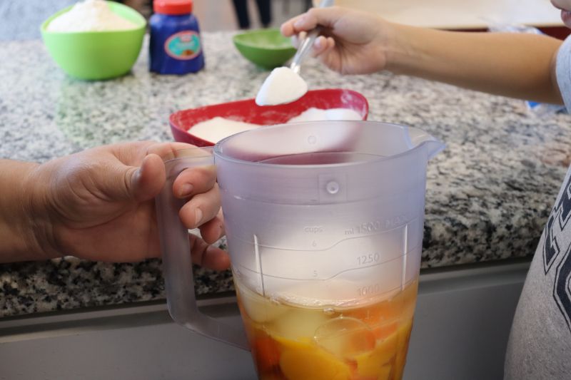 Enquanto a Cássia conduzia o preparo, os alunos aprenderam o passo a passo da receita e o nome de cada ingrediente, em inglês.