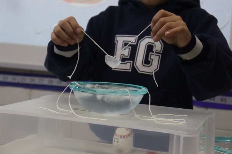 Os alunos do 2º ano do EF participaram de uma aula prática e interessante. A atividade foi conduzida pelas Professoras Sheila, Leila, Cristina e Juliana, que prepararam um experimento para ilustrar, de forma divertida, o conceito de ponto de congelamento e as mudanças de estado da matéria.