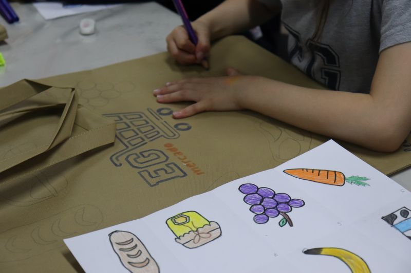 Para tornar a experiência ainda mais significativa, os alunos utilizaram sacolas retornáveis confeccionadas por eles mesmos durante as aulas de Arte, sob a orientação da Professora Vick. A produção das sacolas reforçou a importância da sustentabilidade e do consumo responsável, valores centrais do projeto.