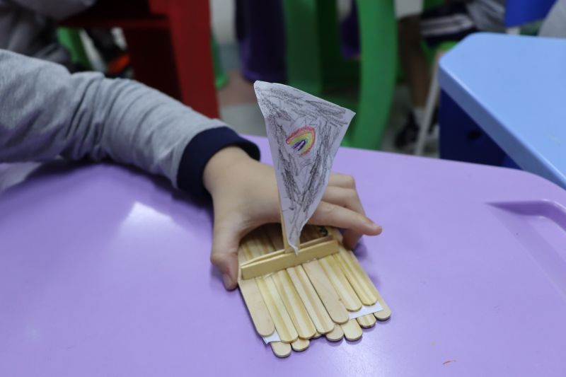 O tema central foi a jangada, uma embarcação artesanal que é um símbolo cultural da costa litorânea brasileira. Utilizando materiais como palitos de sorvete, cola, papel e lápis de cor, os pequenos confeccionaram suas próprias réplicas desse meio de locomoção.