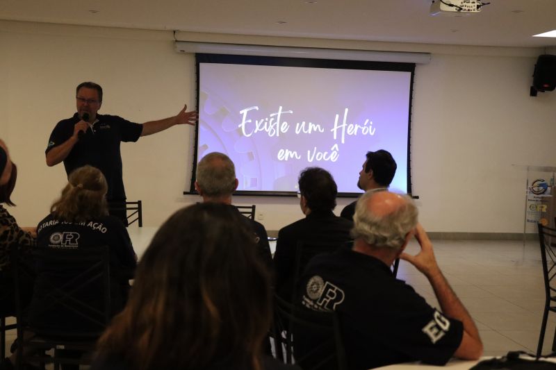 A programação teve início com uma apresentação institucional conduzida pela Diretora-Geral, Janice Guizelini, que compartilhou a história, os valores e os principais diferenciais do EG. Em seguida, o Governador fez uma breve fala, destacando que todos carregam um herói dentro de si, e ilustrou essa mensagem exibindo o clipe da música Hero, de Mariah Carey.