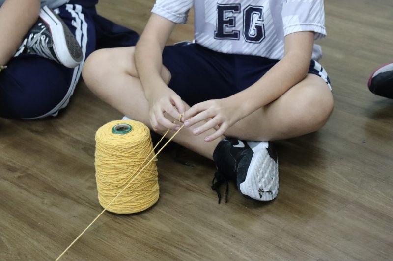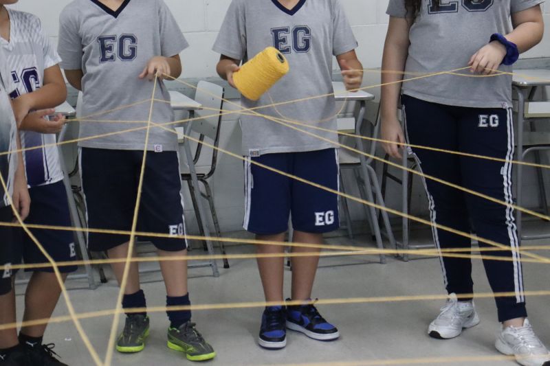Os alunos do 5º ano do EF participaram de uma dinâmica que mexeu com os sentimentos: o Barbante da Amizade, atividade proposta pelas Professoras Patrícia e Sandra.