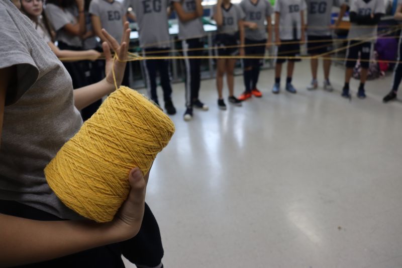 Em roda, cada aluno falava sobre o que valoriza na amizade e, após sua fala, jogava o rolo de barbante para o próximo aluno. Depois de todos manifestarem seus sentimentos, uma teia de barbante foi formada, mostrando a importância de cada um para a construção da teia.