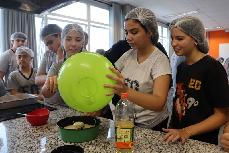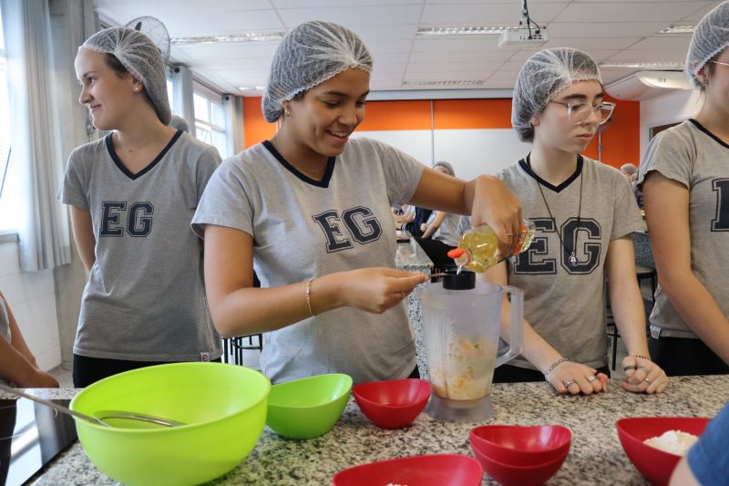A atividade visou reaproveitar partes de alimentos que normalmente seriam descartadas, transformando-as em novas preparações. Orientados pela Cássia, na Cozinha Experimental, os alunos colocaram em pratica o que aprenderam em sala de aula.