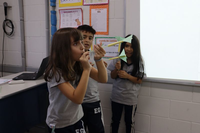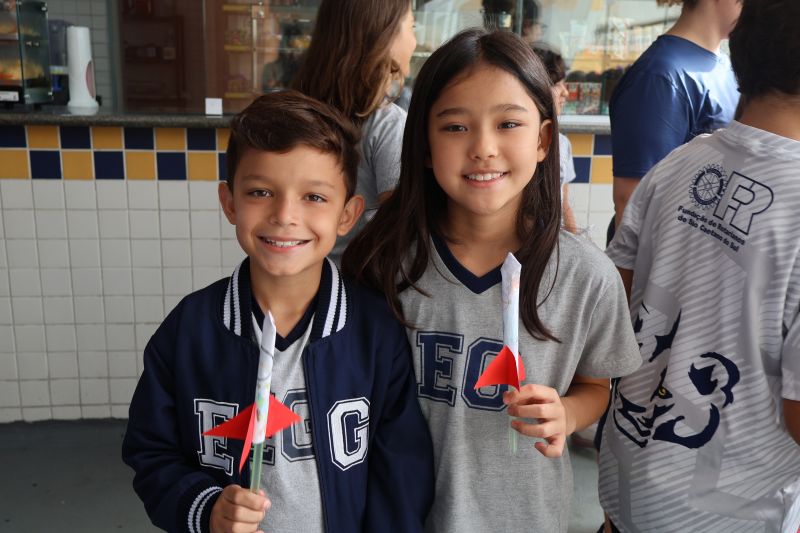 Dessa forma, os pequenos trocaram experiências e verificaram suas hipóteses para o lançamento dos foguetes, de modo divertido e interativo.