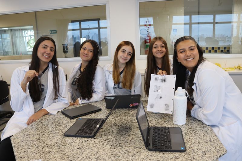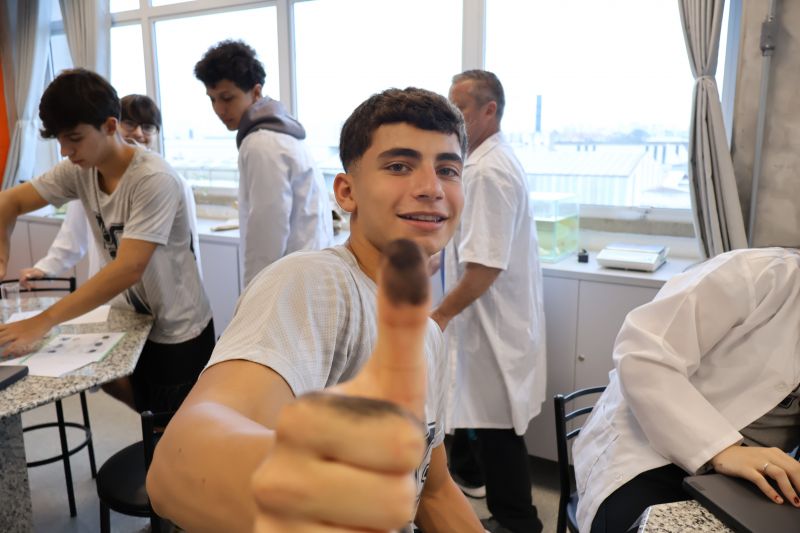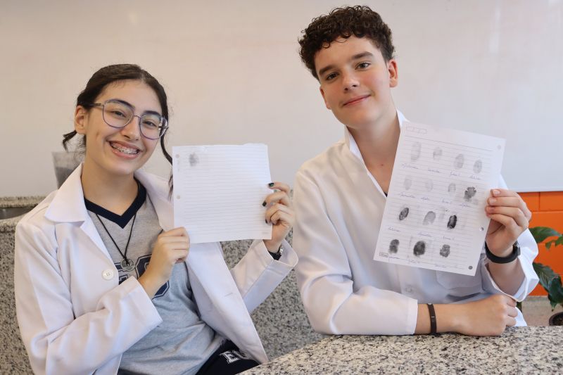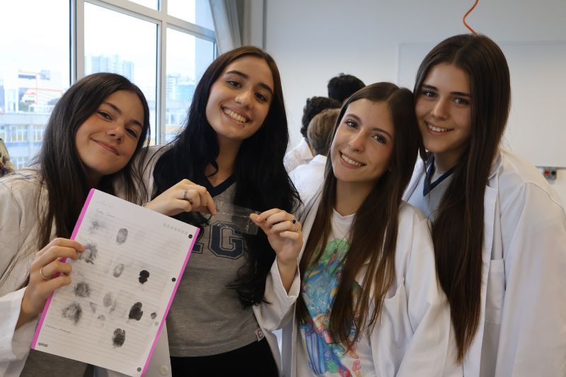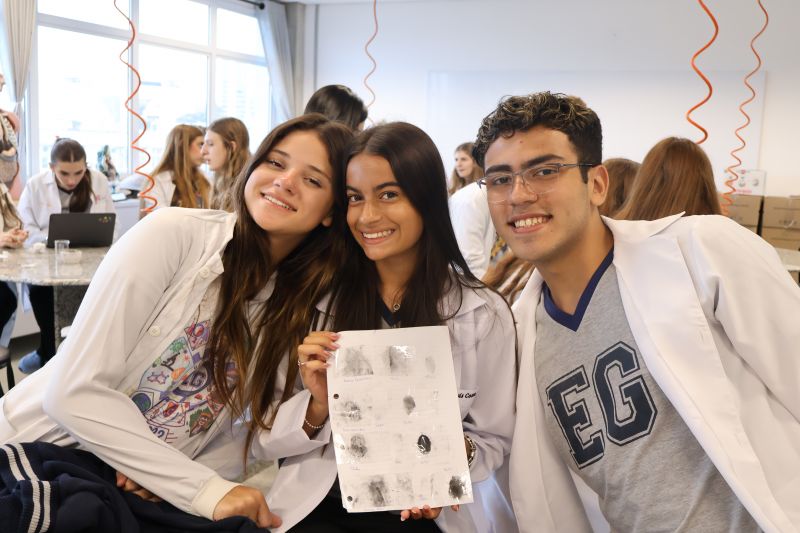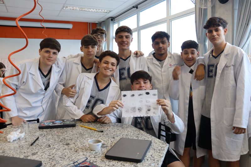 Os alunos da 2ª série do Ensino Médio participaram de uma aula prática, no laboratório, orientados pelo Professor Alex, de Química, com o objetivo de explorar a polaridade das substâncias por meio da impressão digital.