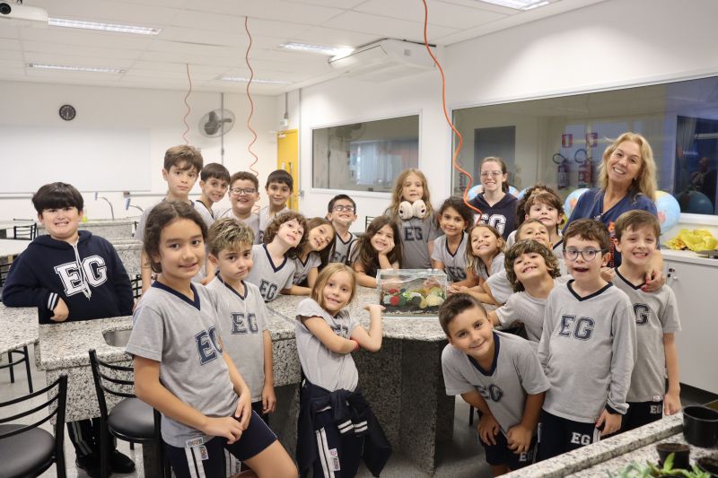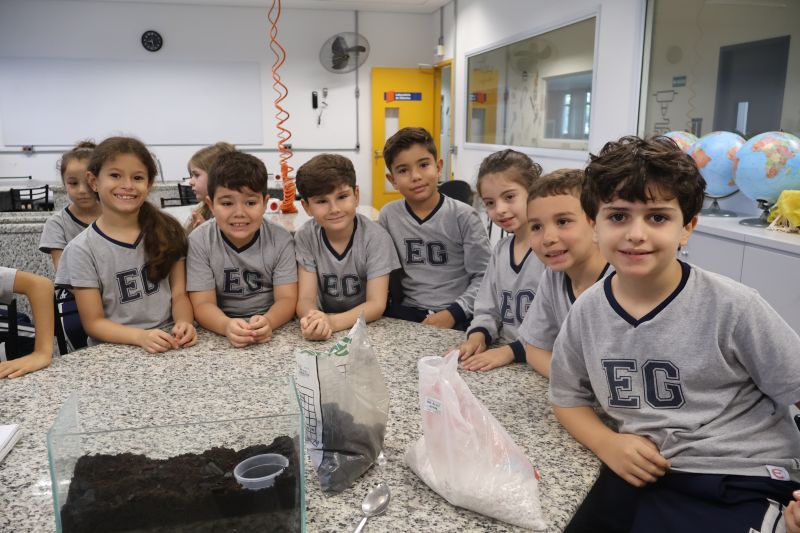 Os alunos do 2º ano do EF, seguindo as orientações das Professoras Juliana, Leila, Maria Cristina e Sheila, confeccionaram um terrário no laboratório.