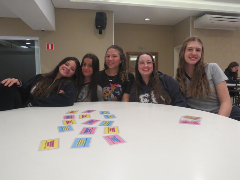 Além de estimular o trabalho em equipe, a dinâmica proporcionou uma forma leve e interativa de revisar os conteúdos trabalhados no Módulo 3 do material Anglo.