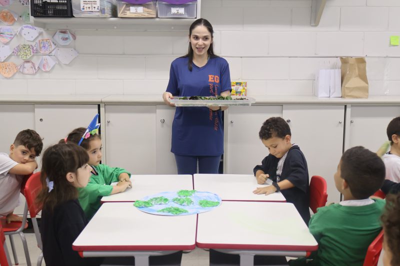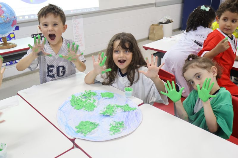 Os alunos do nível 2 da Educação Infantil, sob orientação da Professora Helena, participaram de uma atividade dinâmica sobre o planeta Terra.