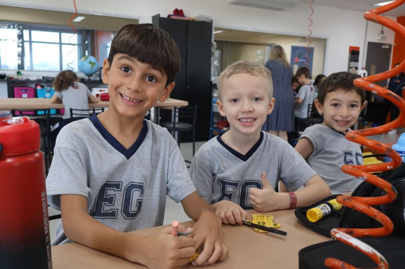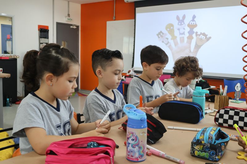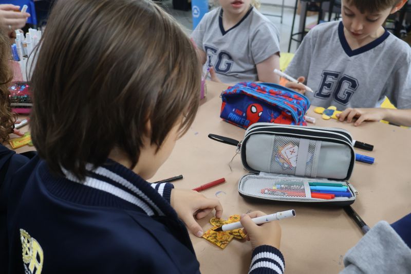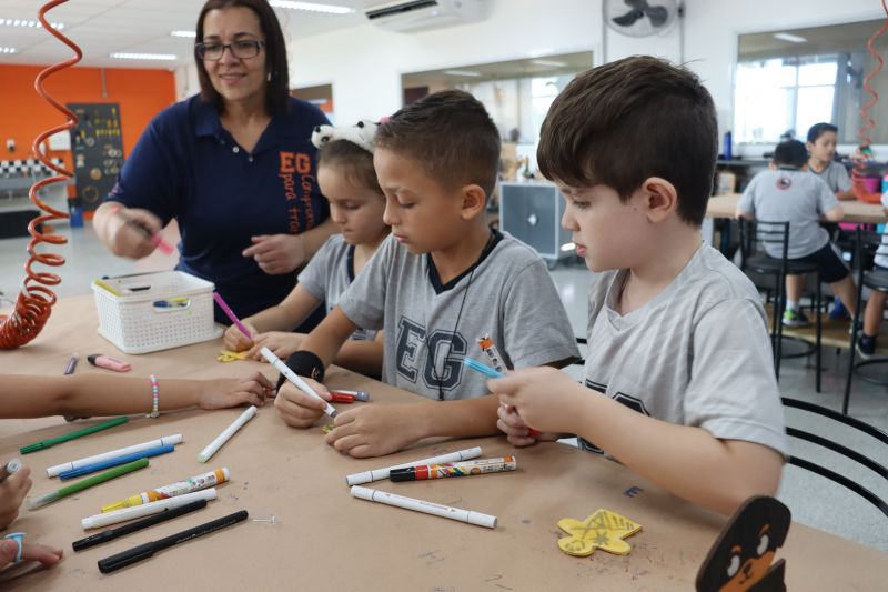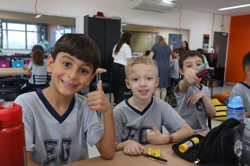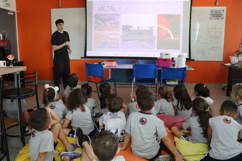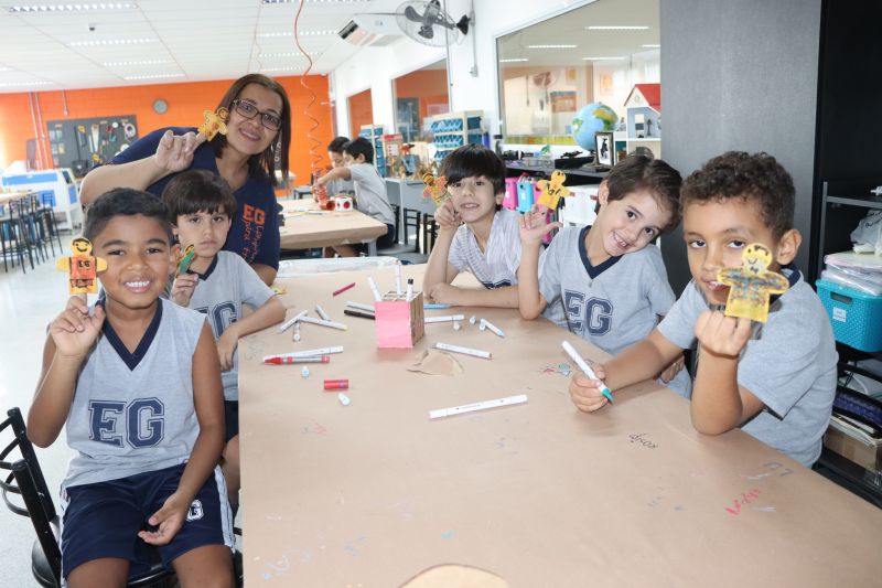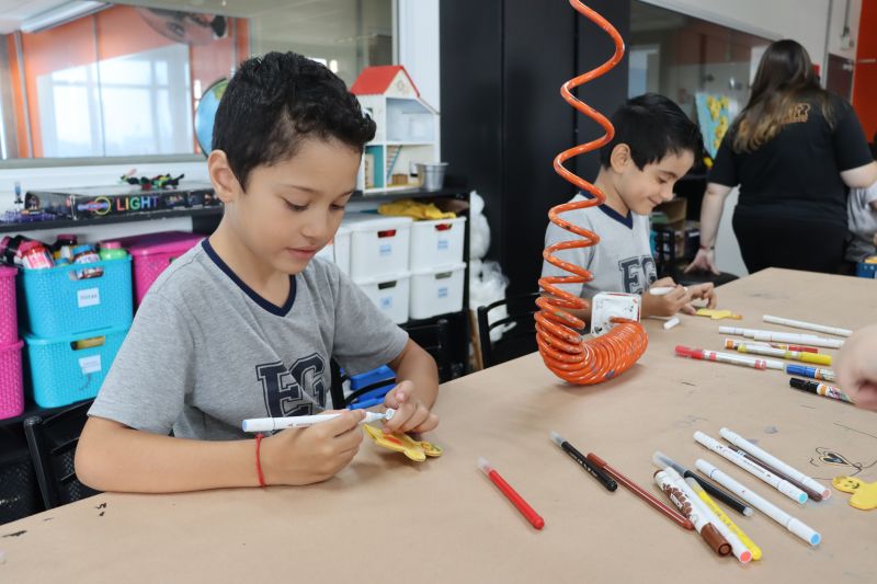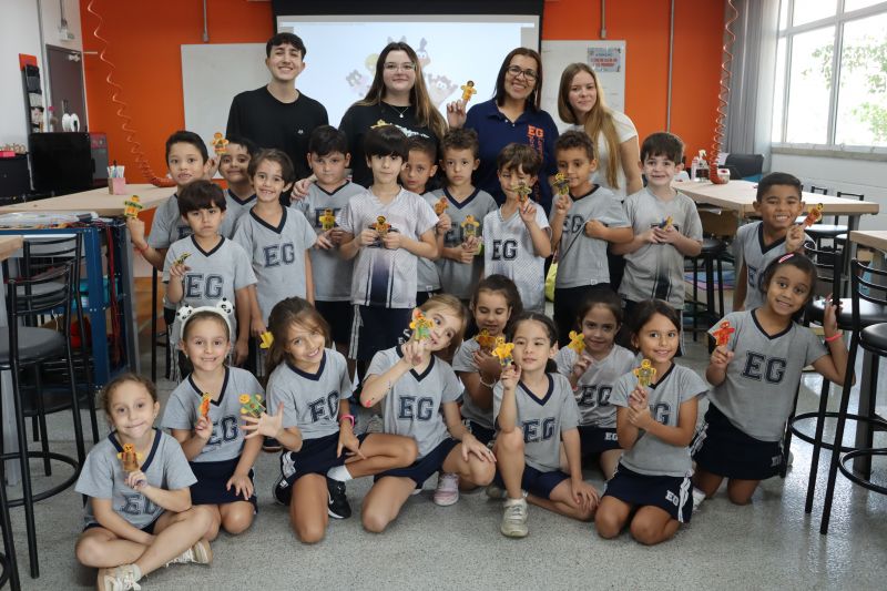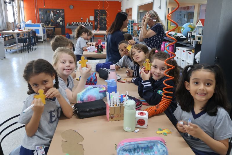 Os alunos do 1º ano do Ensino Fundamental, com auxílio das Professoras Valquíria, Marcela e Rosimeire, foram ao Espaço Maker para participar de uma dinâmica com brinquedos.