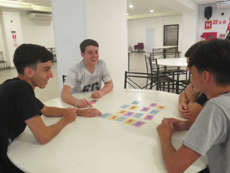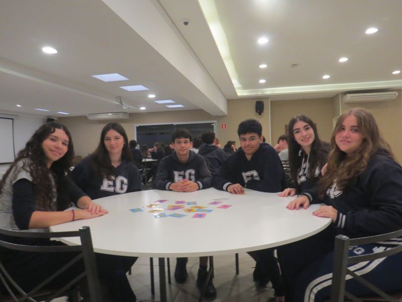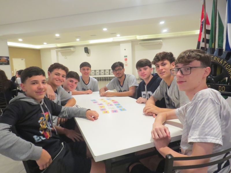 Além de estimular o trabalho em equipe, a dinâmica proporcionou uma forma leve e interativa de revisar os conteúdos trabalhados no Módulo 3 do material Anglo.